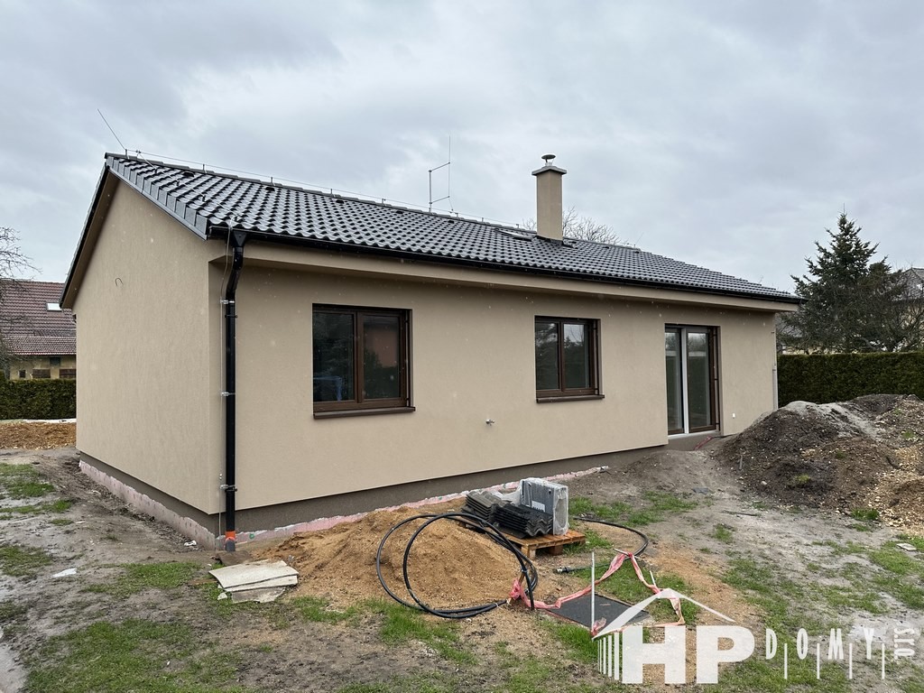 Dokončená realizace našeho oblíbeného typového bungalovu HP90, tentokrát v obci Všejany. Difuzně uzavřená dřevostavba s dispozicí 4+kk a užitnou plochou 90 m2 je ideální pro 4člennou rodinu. Klienti mají v domě osazenou krbovou vložku s automatickou regulací hoření.