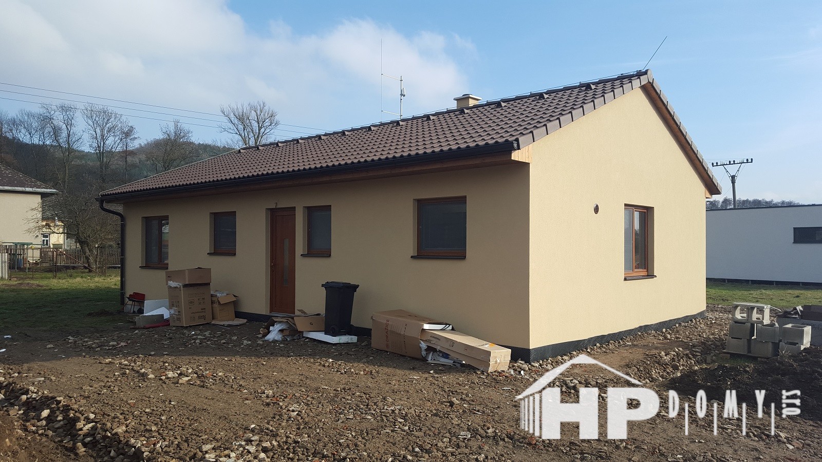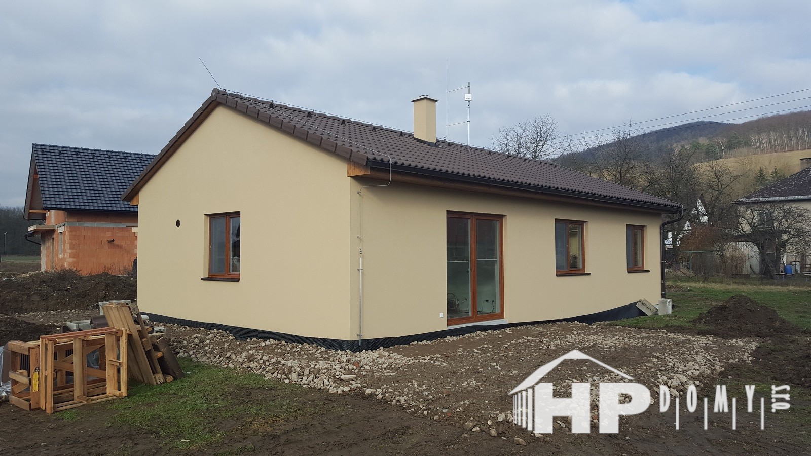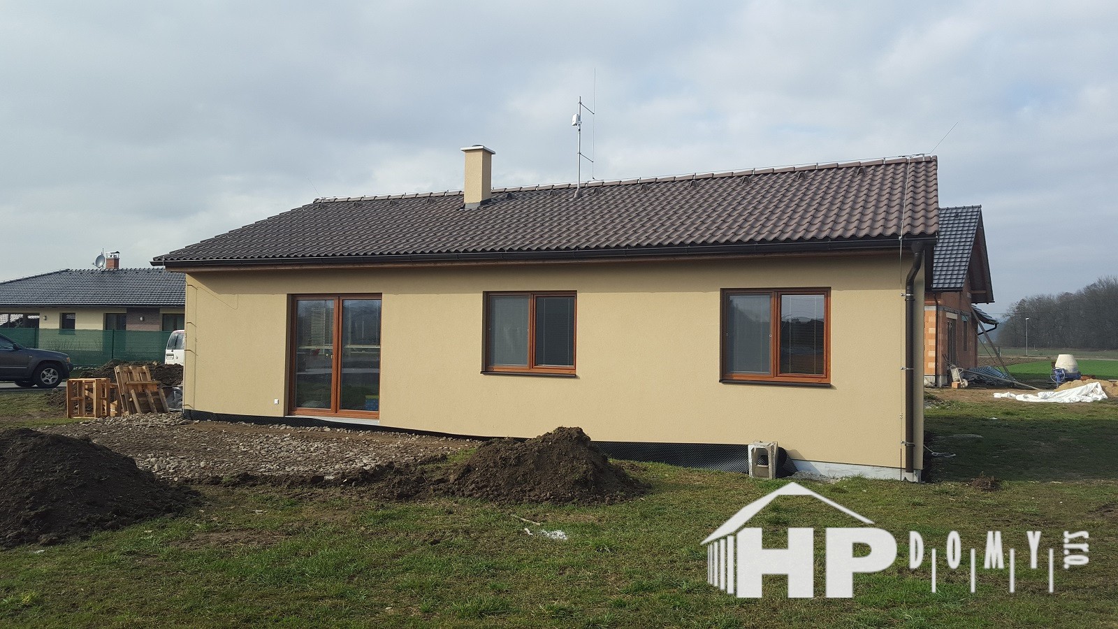 Dokončená realizace našeho oblíbeného typového bungalovu HP90 v Zábřehu na Moravě. Difuzně uzavřená dřevostavba s dispozicí 4+kk a užitnou plochou 90 m2 je ideální pro 4člennou rodinu. Propracovaná studie rodinného domu HP90 zaručuje vysokou kvalitu provedení spolu s ekonomicky přijatelným řešením – díky tomu je dům cenově dostupný opravdu pro každého. Dům nabízí prostorný obývací pokoj s kuchyňským koutem a spíží, kde je použito podlahové vytápění; ložnici, 2 dětské pokoje, prostornou koupelnu s vanou a sprchovým koutem, komfortní zádveří a technickou místnost se samostatným WC. Velké francouzské okno v obývacím pokoji zajistí dostatečné množství světla a pohodlný vstup na zahradu.