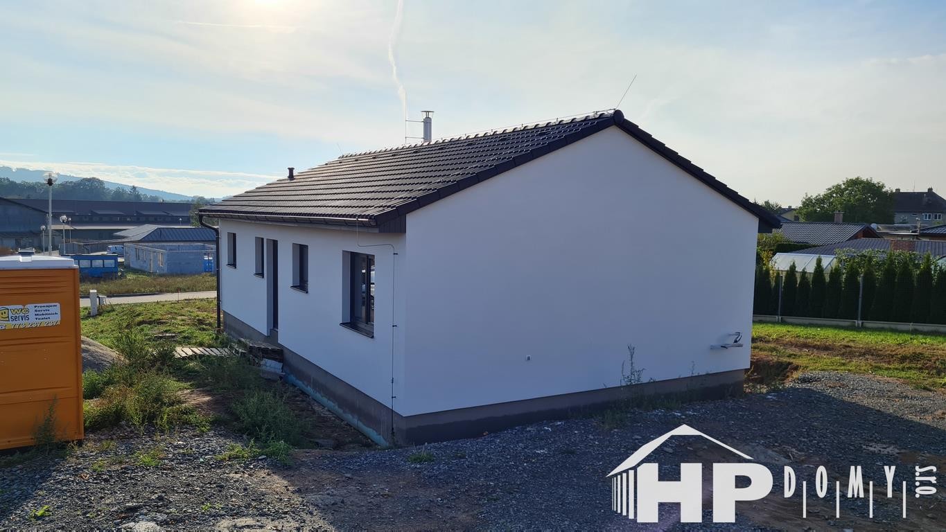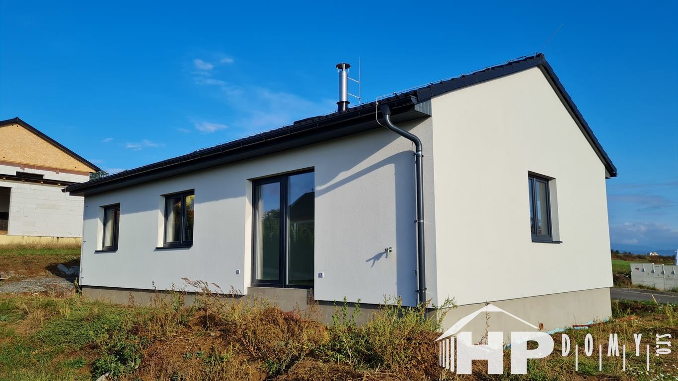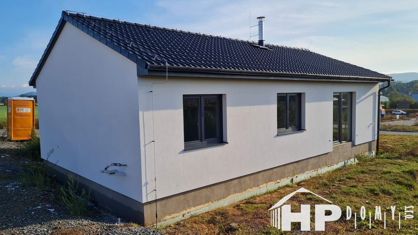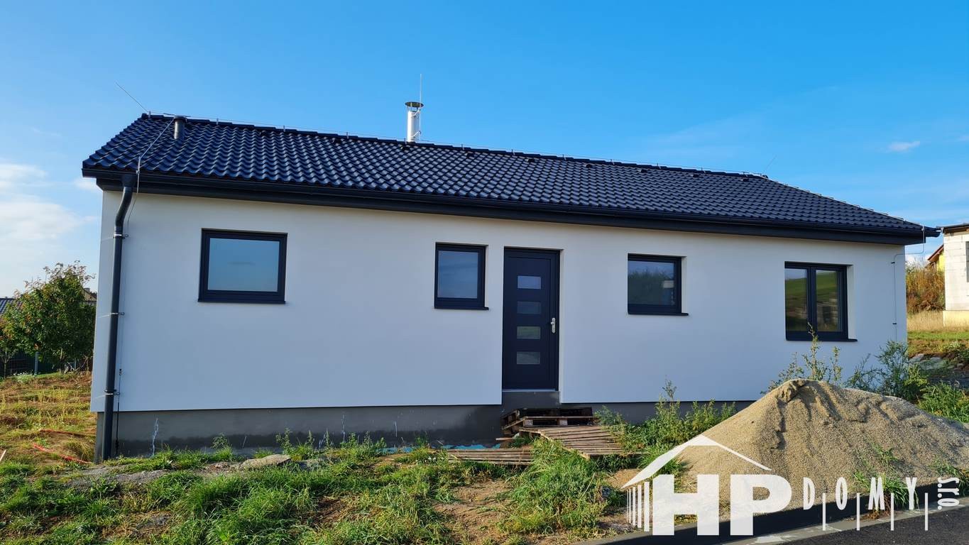 Dokončená stavba oblíbeného bungalovu HP90 o dispozici 4+kk a rozloze 90 metrů čtverečních v obci Zvole.